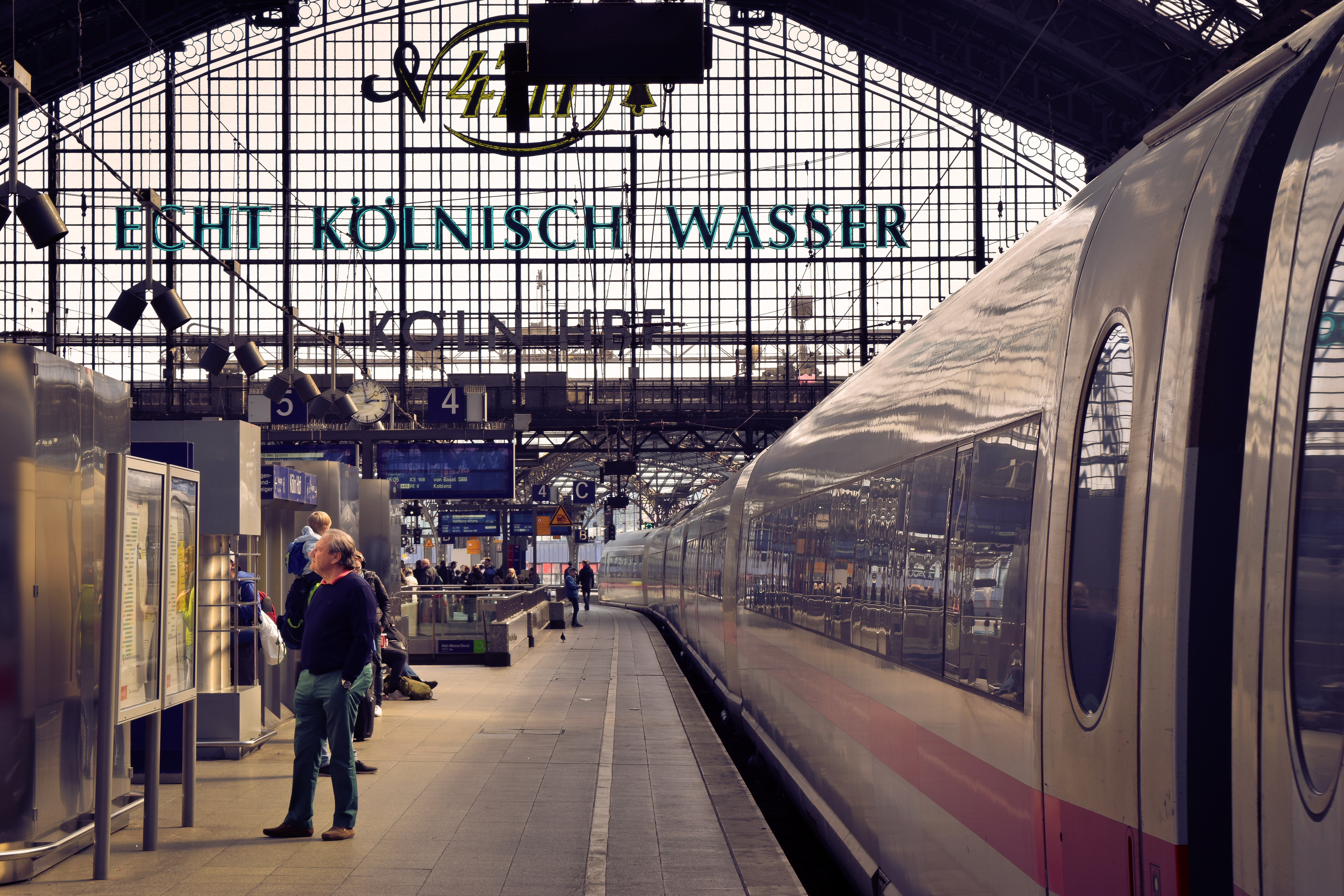 Cologne has one of the busiest train stations in Europe. Some 1,300 trains arrive and depart here every day, including frequent connections with the Thalys to Paris via Brussels, and with the Eurostar to London, also via Brussels